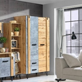 ROUPEIRO 2 PORTAS + 2 GAVETAS LOFTER – DESIGN INDUSTRIAL, ARRUMAÇÃO COMPLETA E ELEGÂNCIA URBANA PARA O SEU QUARTO!O ROUPEIRO 2 PORTAS + 2 GAVETAS LOFTER COMBINA FUNCIONALIDADE, ESTILO E ORGANIZAÇÃO NUMA SÓ PEÇA. COM UMA ESTRUTURA MODERNA INSPIRADA NO DESIGN INDUSTRIAL, DESTACA-SE PELA SOFISTICADA COMBINAÇÃO DE CORES DAB WOTAN/BETON MILLENIUM, QUE CONFERE UM ASPETO URBANO E CONTEMPORÂNEO AO AMBIENTE.O INTERIOR FOI PENSADO PARA GARANTIR UMA ARRUMAÇÃO PRÁTICA E EFICIENTE: DISPÕE DE 1 VARÃO PARA PENDURAR ROUPAS E 1 PRATELEIRA SUPERIOR, PERFEITA PARA MALAS, CAIXAS, ROUPAS DOBRADAS OU ACESSÓRIOS. ALÉM DISSO, AS 2 GAVETAS INFERIORES OFERECEM ESPAÇO EXTRA PARA ORGANIZAR PEÇAS MENORES, MANTENDO TUDO SEMPRE AO ALCANCE E BEM DISPUESTO.RESISTENTE E BEM ESTRUTURADO, O ROUPEIRO LOFTER É IDEAL PARA QUARTOS QUE EXIGEM UMA SOLUÇÃO COMPLETA DE ARMAZENAMENTO SEM ABRIR MÃO DO ESTILO.CARACTERÍSTICAS PRINCIPAIS:• ROUPEIRO COM 2 PORTAS E 2 GAVETAS.• INTERIOR COMPOSTO POR 1 VARÃO E 1 PRATELEIRA.• DESIGN INDUSTRIAL E MODERNO.• ACABAMENTO EM DAB WOTAN/BETON MILLENIUM.• ESTRUTURA ROBUSTA E GRANDE CAPACIDADE DE ARRUMAÇÃO.• PERFEITO PARA QUARTOS QUE PRECISAM DE PRATICIDADE E ESTILO.O ROUPEIRO 2 PORTAS + 2 GAVETAS LOFTER É A ESCOLHA CERTA PARA QUEM PROCURA FUNCIONALIDADE, DURABILIDADE E UM TOQUE DE ELEGÂNCIA INDUSTRIAL!