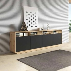 APARADOR 4 PORTAS EM TAURUS OAK/PRETO – ESTILO INDUSTRIAL E MÁXIMA FUNCIONALIDADECOM UM DESIGN CONTEMPORÂNEO E IMPACTANTE, ESTE APARADOR DESTACA-SE PELA COMBINAÇÃO ELEGANTE ENTRE O ACABAMENTO EM TAURUS OAK E O PRETO MATE. É A SOLUÇÃO PERFEITA PARA QUEM PROCURA ORGANIZAÇÃO E ESTILO NUMA SÓ PEÇA.• 4 PORTAS ESPAÇOSAS – IDEAIS PARA GUARDAR LOUÇA, TÊXTEIS, DOCUMENTOS OU OBJETOS DO DIA A DIA.• LINHAS RETAS E MODERNAS – ESTÉTICA CLEAN QUE SE INTEGRA FACILMENTE EM QUALQUER DECORAÇÃO CONTEMPORÂNEA.• ESTRUTURA ROBUSTA E DURÁVEL – MATERIAIS DE QUALIDADE QUE GARANTEM LONGA VIDA ÚTIL.• PERFEITO PARA SALAS DE JANTAR, SALAS DE ESTAR OU HALLS – UMA PEÇA VERSÁTIL COM GRANDE CAPACIDADE DE ARMAZENAMENTO.COR: TAURUS OAK / PRETO MATEELEGANTE, PRÁTICO E COM UM TOQUE INDUSTRIAL SOFISTICADO – UM APARADOR QUE SE DESTACA PELO DESIGN E PELA FUNCIONALIDADE.